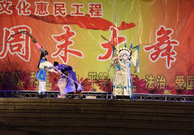 4月15日晚,由譽(yù)為河南省著名“刀馬旦”的巴秋艷率領(lǐng)眾女將上演傳統(tǒng)名劇《楊門女將》,劇中女將們巾幗不讓須眉,再戰(zhàn)沙場保家衛(wèi)國的精彩演出引來觀眾陣陣掌聲。兩場巾幗大戲,吸引了上千名觀眾駐足觀看,紛紛表示“文化惠民”讓大家過足了戲癮。